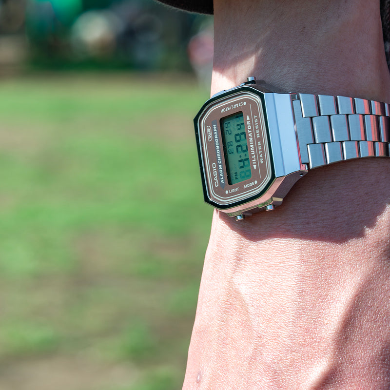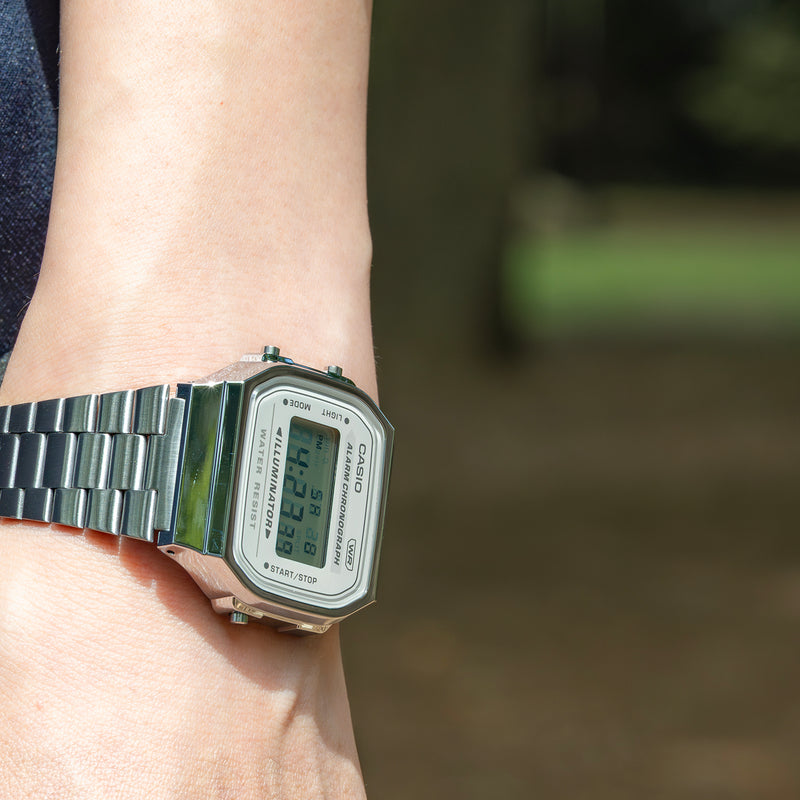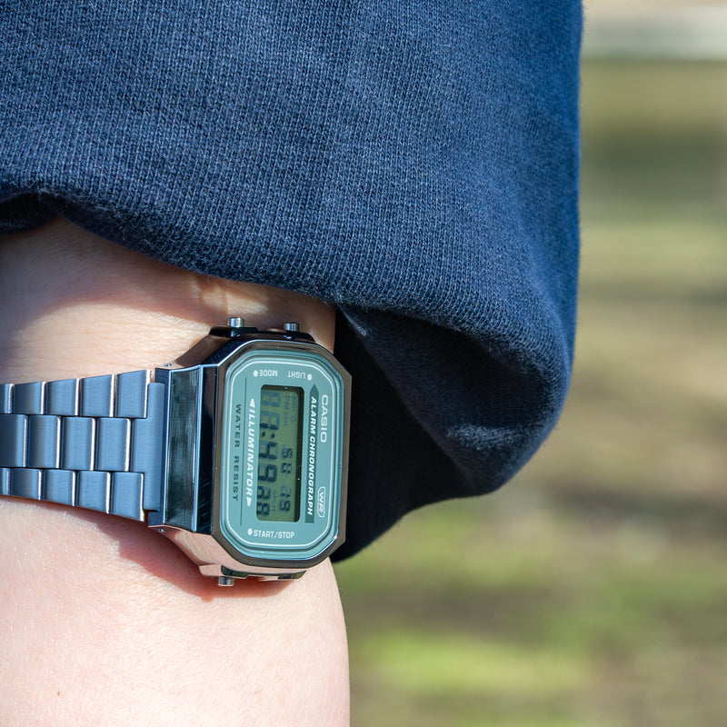 カシオA168WAは、クラシックなデザインとベーシックなテクノロジーが融合したスタイリッシュな腕時計です。落ち着きのあるグレイッシュカラーの文字盤は、どんなシーンにもマッチして洗練された印象を与えます。控えめでありながらも高級感を醸し出し、ビジネスシーンからカジュアルシーンまで幅広く対応できるのも、この腕時計の魅力の一つです。レトロな雰囲気のスクエアケースとメタルバンドは、時代を超えて愛されるデザインであり、手元に特別な存在感をもたらします。液晶をむらなく照らすELバックライトも、この腕時計のもう一つの魅力です。ELバックライトは生産縮小の方向に進んでいるため、現在では希少な存在になりつつあります。 | |