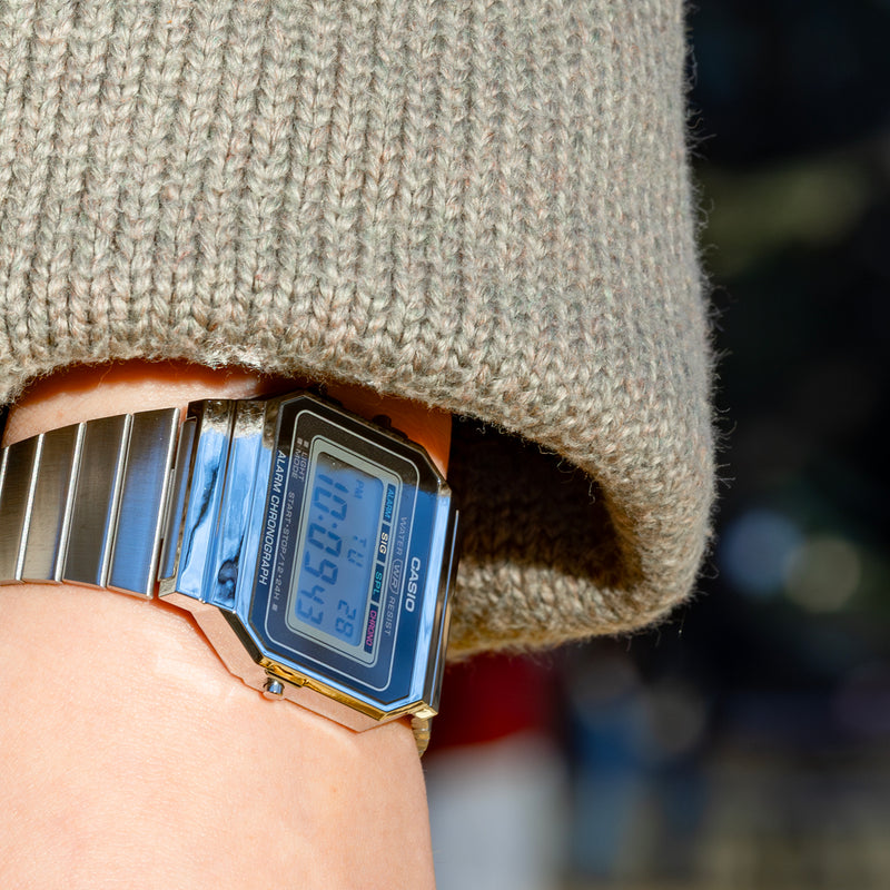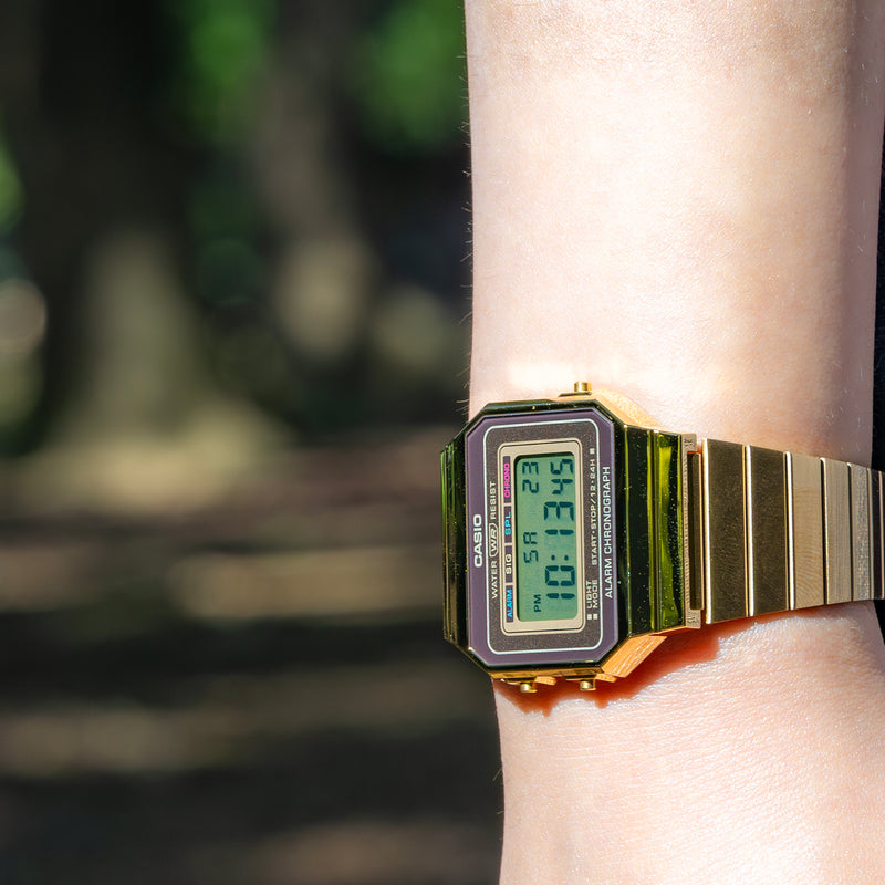 カシオA700は、薄型ケースを身にまとったスマートな腕時計です。チープカシオの中でも最も薄いモデルの一つで、厚さわずか6mmのスリムケースはつけていることを忘れるほどです。デザイン性も素晴らしく、ケースのエッジが極めてシャープで、全体の印象がキリッと引き締まっています。控えめな配色の文字盤も高級感あふれる意匠で、ビジネスにも対応できる様相です。実用性も十分高く、時刻は鮮明に表示されるうえ、DIN 8310/ISO 22810に準拠した防水性能も備えています。 | |
