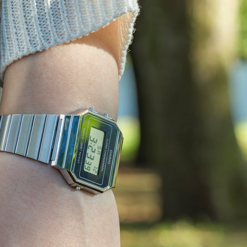 カシオA700は、薄型ケースを身にまとったスマートな腕時計です。チープカシオの中でも最も薄いモデルの一つで、厚さわずか6mmのスリムケースはつけていることを忘れるほどです。デザイン性も素晴らしく、ケースのエッジが極めてシャープで、全体の印象がキリッと引き締まっています。控えめな配色の文字盤も高級感あふれる意匠で、ビジネスにも対応できる様相です。実用性も十分高く、時刻は鮮明に表示されるうえ、DIN 8310/ISO 22810に準拠した防水性能も備えています。 | |