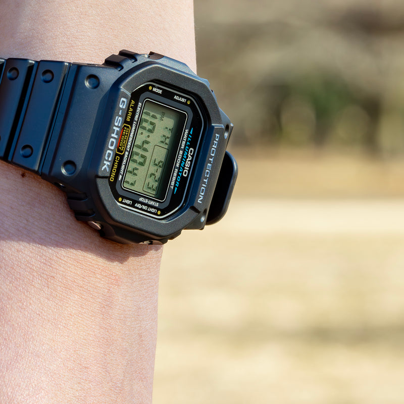 飽くなき強さを求めて進化を続けるタフネスウオッチG-SHOCKの定番スクエアタイプです。初代DW-5000のDNAを引き継いだ5600シリーズの基本モデルです。 | |
