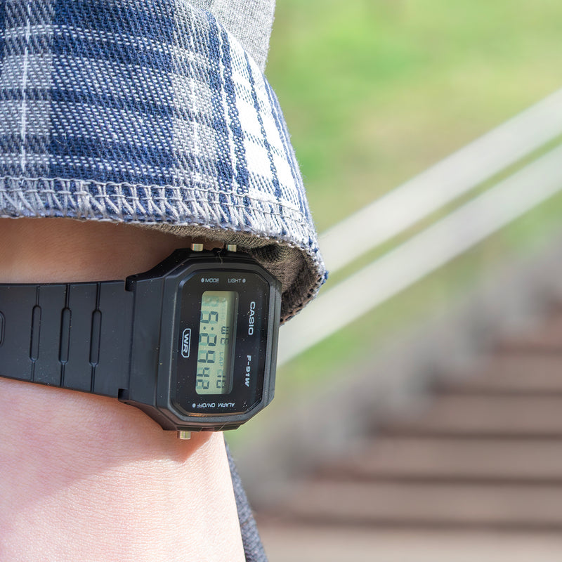 カシオF-91WBは、チープカシオの中でも特に人気のF-91Wのバリエーションモデルです。オリジナルモデルとの一番の違いは、枠線や機能説明が省略された文字盤で、極めてシンプルなデザインになっています。従来のデザインを踏襲しつつ、ケースとバンドをワントーンで統一したことで、よりスタイリッシュな印象に進化しました。オリジナルのF-91Wをお持ちの方も、両モデルを比較しながら使うことで、F-91Wのクラシックな魅力とF-91WBのモダンなスタイルの両方が楽しめます。用途や気分に合わせて使い分けることで、より豊かな腕時計ライフが実現するでしょう。 | |