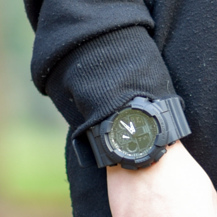 タフネスを追求し進化を続けるG-SHOCKから、アナログとデジタル表示が融合したNewコンビネーションモデルが登場。新開発のモジュールは、1/1000秒ストップウオッチや速度計測機能の搭載を実現。JIS1種の耐磁性能を有し、高い実用性を誇ります。フェイスデザインは4つの大型液晶表示と、軽量で耐衝撃性に優れたアルミ製の大型時分針により構成。アナログとデジタル表示がシンメトリーにレイアウトされ、ダイナミックなフェイスデザインに仕上がりました。よりタフに、より実用的に進化したNew G-SHOCKの登場です。 | |