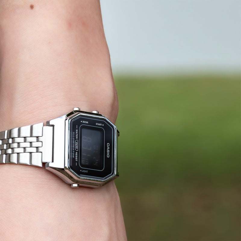 カシオLA680は、8角形フォルムがノスタルジックなレディースデシタルウォッチ。特に花柄のデジタルウォッチはレアな存在です。 | |