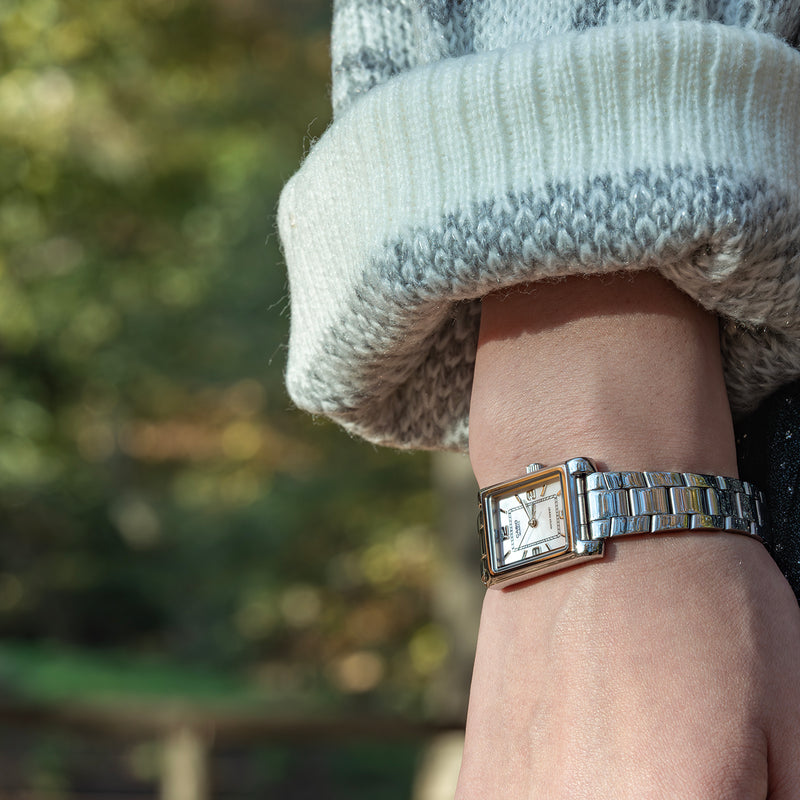 | カシオLTP-1234DSは、マザーオブパールの文字盤が放つ上品な輝きと、クラシカルなレクタンギュラーケースが融合した、繊細で美しい腕時計です。自然が生み出す真珠母貝の文字盤は、一つひとつ異なる表情を持ち、あなただけの特別な個性を手元にもたらします。カラーは、やさしく可憐なピンクと、清楚で凛とした印象を与えるブルーの2色展開。それぞれが装いに合わせて、フェミニンにもクールにも柔軟に対応します。ケースは手首に自然に馴染む小ぶりな長方形。ブレスレットには、アールデコ調の装飾性を感じさせる3連コマが採用され、クラシカルな雰囲気とメタルの質感が調和したエレガントな仕上がりです。文字盤の内周には1秒刻みの目盛りがプリントされ、3針アナログのシンプルな構成ながら、機能性にも配慮された設計になっています。時分針には先端に向かって太くなるバトン針を採用。控えめでありながらも存在感があり、ディテールも上質で好印象です。機能的にも申し分なく、水仕事や雨でも安心の3気圧防水仕様。日常使いはもちろん、きちんと感のあるシーンにもふさわしい、上品でタイムレスな一本です。 | |
