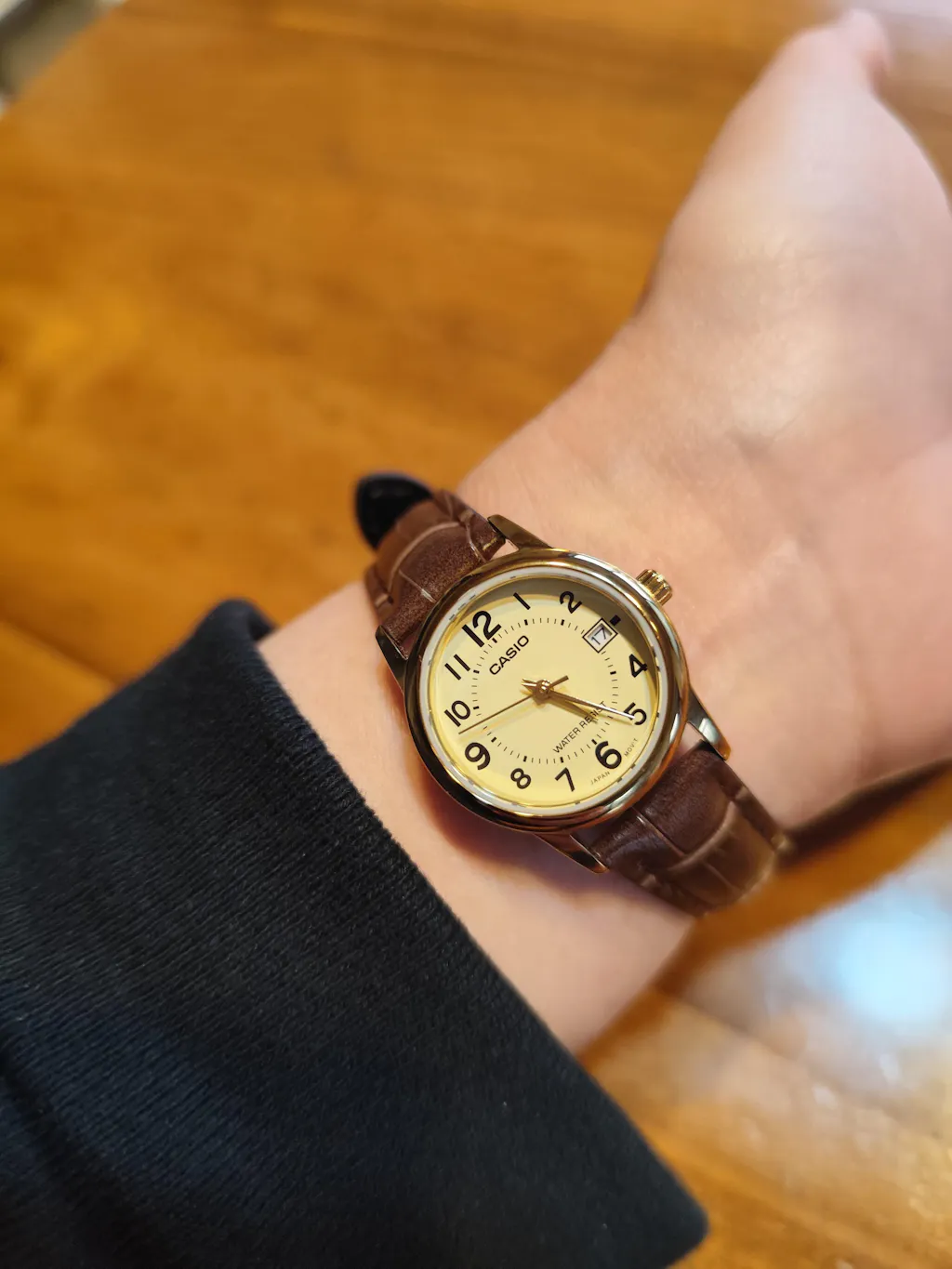 ケース:ゴールド 文字盤:ブラック ベルト:ブラウン