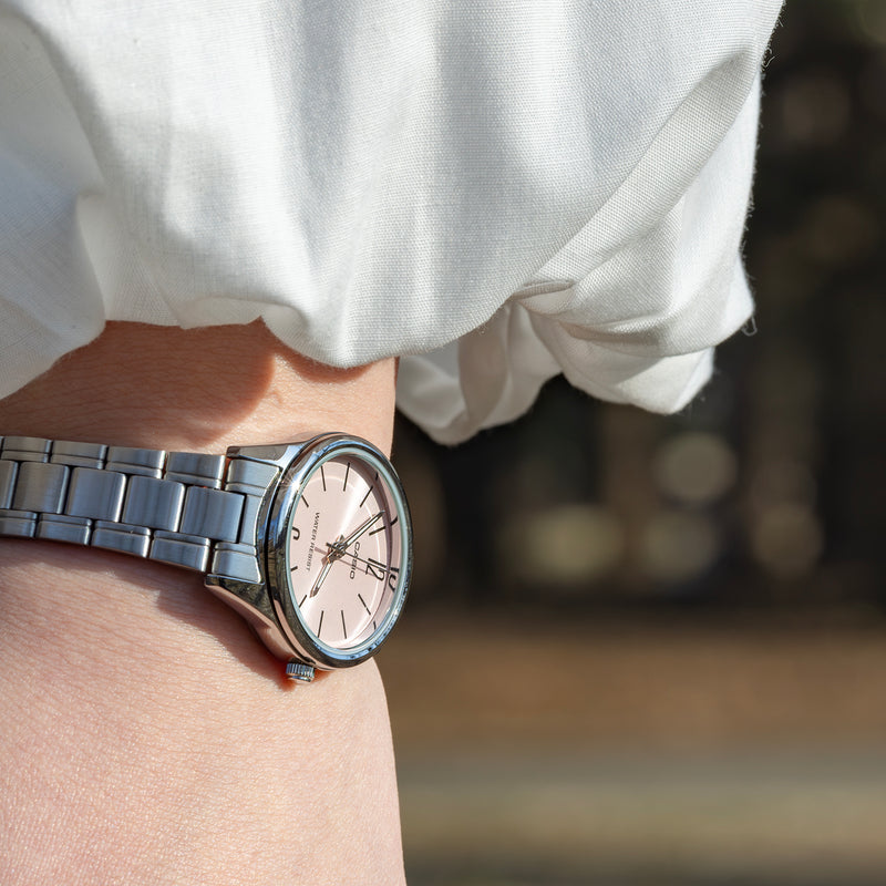ケース:シルバー 文字盤:ピンク ベルト:シルバー