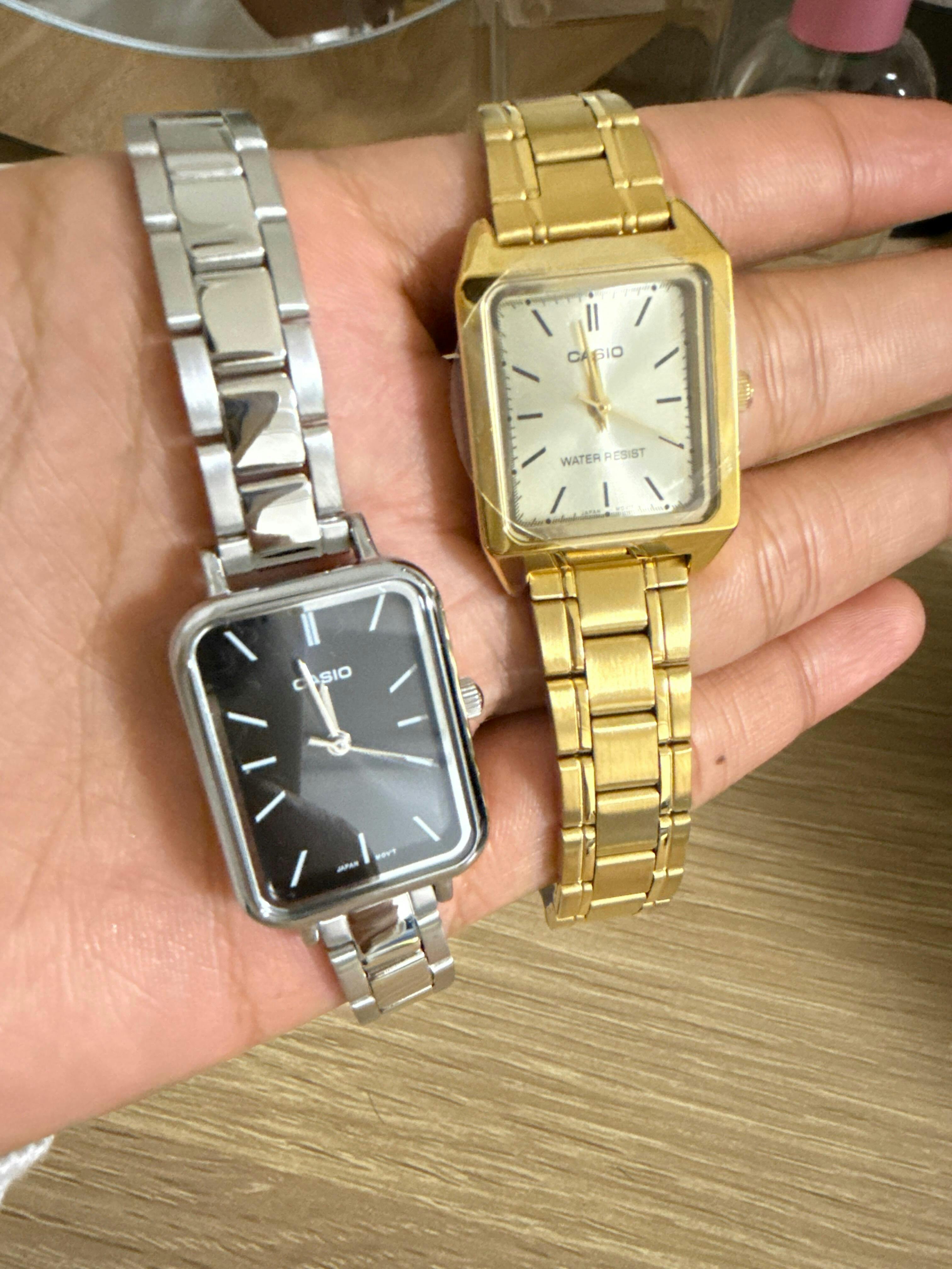 | カシオLTP-V009Dは、細身で洗練されたデザインが魅力的な腕時計です。コンパクトな長方形ケースを採用しており、手首にすっきりとフィットします。文字盤周辺の縁が細くなっているため、ケースが小ぶりな割に文字盤の面積が広く、見栄えがするうえ時刻が読みやすく実用的です。細身でバランスの良い針と時字が、視認性を一層高めています。文字盤のカラーには、ベーシックなホワイトやブラックのほか、淡いパステルカラーのモデルも用意されており、スタイルやシチュエーションに応じて選べる多彩なバリエーションが魅力です。バンドは3連コマのデザインで、鏡面と艶消しのコンビネーションが、高級感とともにスタイリッシュな印象を与えています。 | |