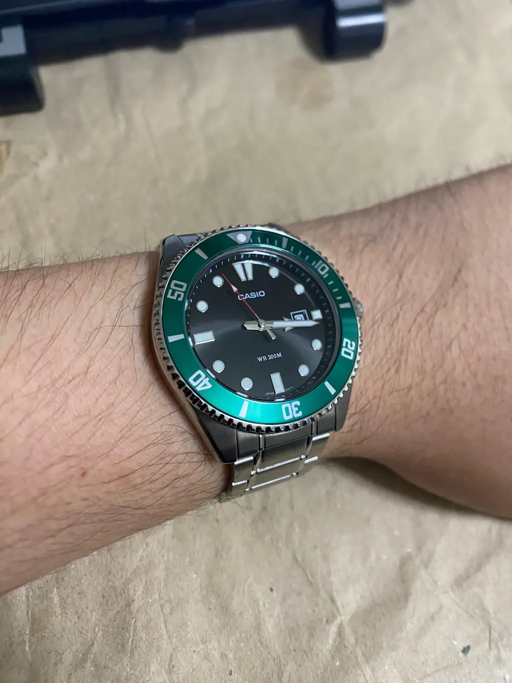 ケース:シルバー 文字盤:ブラック / グリーン ベルト:シルバー