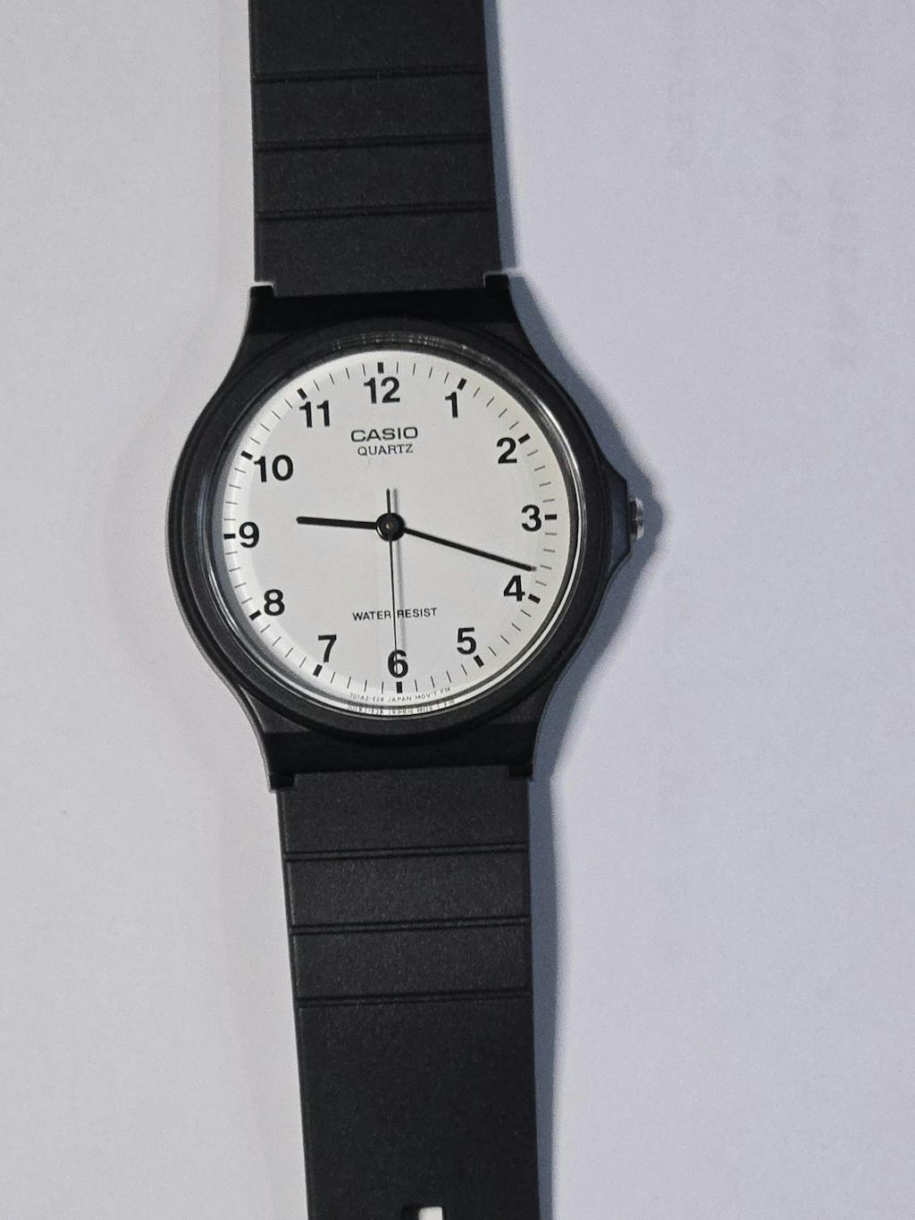 | カシオMQ-24は、腕時計に最低限必要なものだけで構成された、究極のミニマルウォッチです。シンプル、時刻が見やすい、軽い、丈夫などは、多くのチープカシオ共通の特徴ですが、MQ-24はその究極形。すべての特徴を高い次元でクリアーしています。針は棒状で、そっけなくも見えますが、時・分・秒それぞれに最適な長さと太さが与えられた、計算され尽くしたデザインです。ラウンド型ケースとストレートなベルトの組み合わせにも無駄がありません。唯一遊び心が見て取れるのが文字盤で、バリエーションモデルごとに、様々な工夫が散りばめられています。 | |