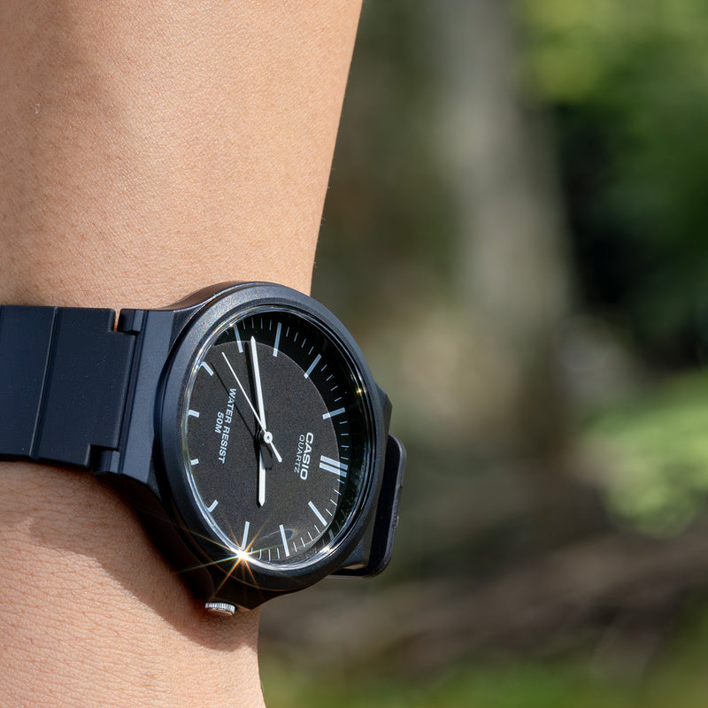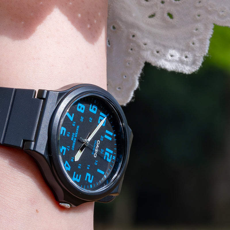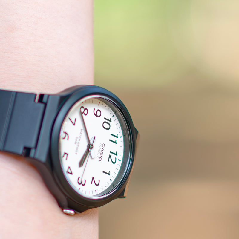 カシオMW-240は、アナログ・チープカシオの中でも、最も文字盤が大きいモデルの一つです。定番のラウンド型チープカシオのデザインそのままに、サイズが大きく拡張されました。ラージサイズ化により、針が力強いデザインになり、視認性も向上しています。愛らしいルックスも健在で、チープカシオファンならずとも、思わず引き寄せられてしまうでしょう。異なるテイストのバリエーションモデルも健在で、選ぶ楽しみも味わわせてくれます。 | |